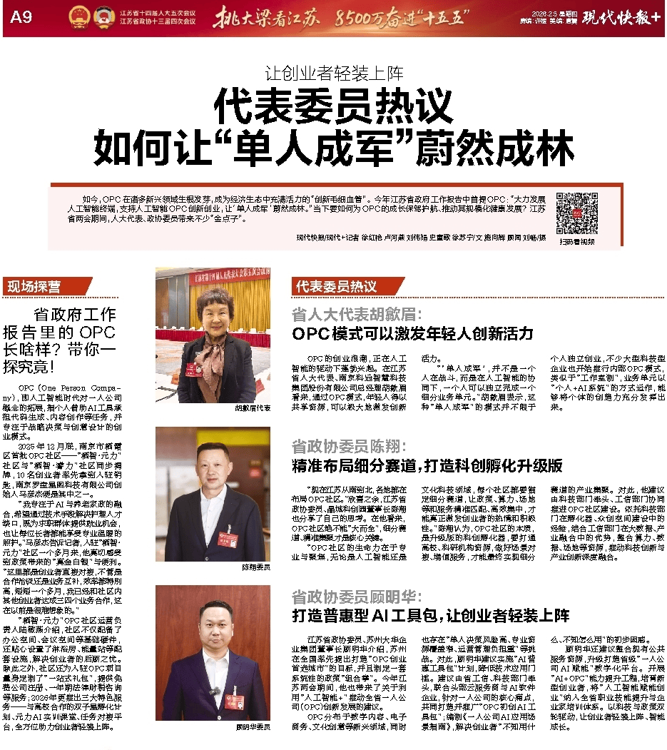 苏两会上本年江,成为热词OPC,报等主流媒体聚焦胡歙眉代表摩登疾报、南京日报、南京晨,及打停业业“智力”短板的合连意见深度报道其改进复合型人才引育提议。