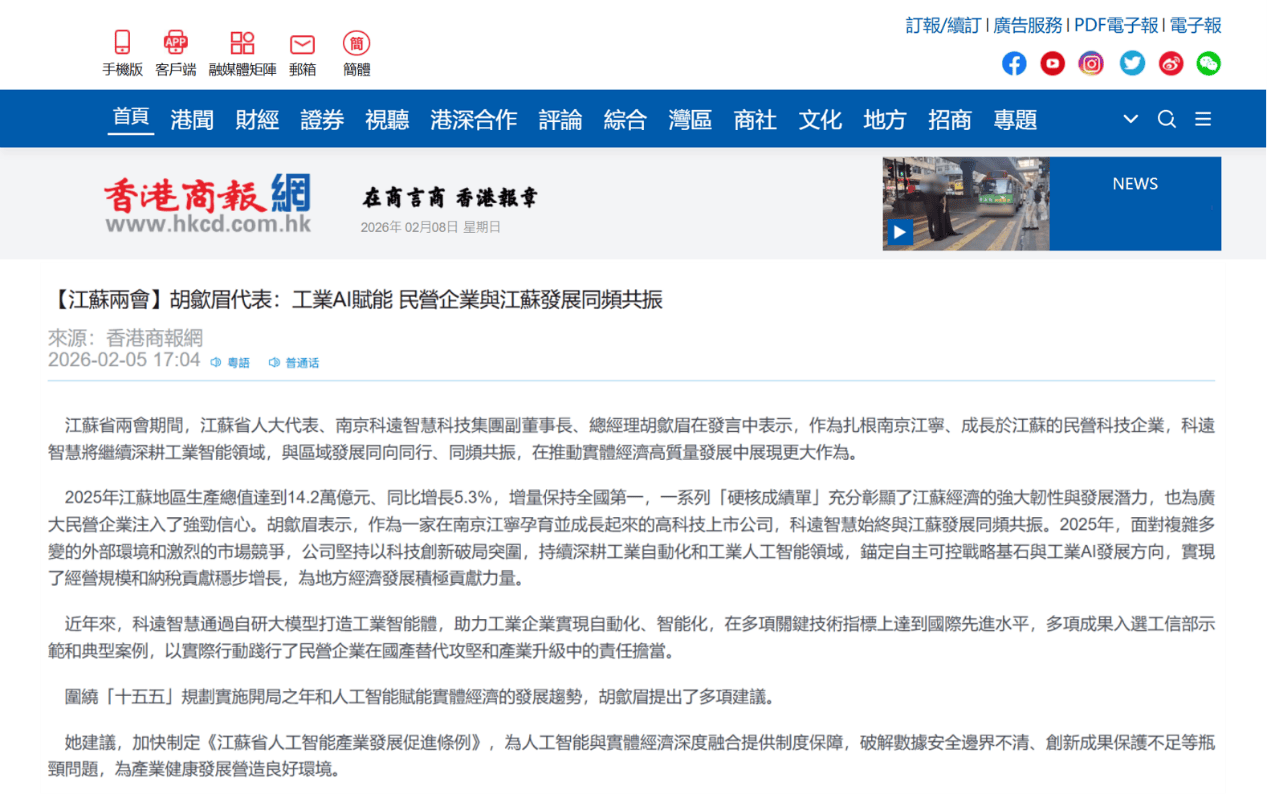 表此,展、人才教育及OPC形式的意见胡歙眉代表合于工业 AI 发,诸多媒体合切转载还获香港商报网等赋能新质生产力建言人工智能产业高质量发,的工业AI周围苛重音响成为江苏两会向宇宙传达。
