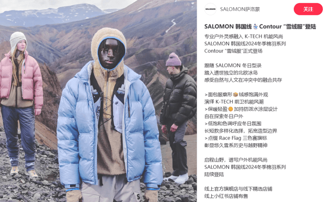 领略据,CH全系采用低饱和色系萨洛蒙韩国线K-TE,合亚洲消费者需求版型安排也更契。le隔热背心、Contour羽绒服等系列单品其具备前卫性能安排与陌头潮水感的Pinnac,受到平凡眷注已经推出就。