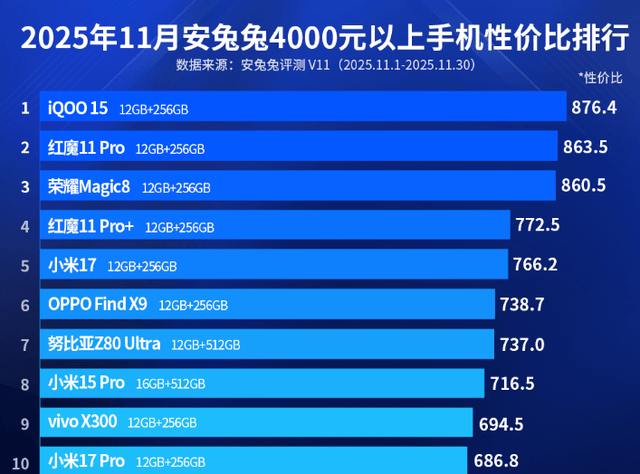 来说整体,000元以上手机性价比排行榜中正在安兔兔2025年11月份4, Pro排列第一名和第二名iQOO 15和红魔11。兔平台上正在安兔亚星代理平台别为876.4分和863.5分这两款智高手机的性价比评分分。中其,第五代骁龙 8 至尊版管造器红魔 11 Pro 搭载的,3nm 工艺搭配台积电 , 20% 的同时CPU 功能提拔,5%—— 纯粹说能效还优化了 3,强、还更省电”即是 “功能更。