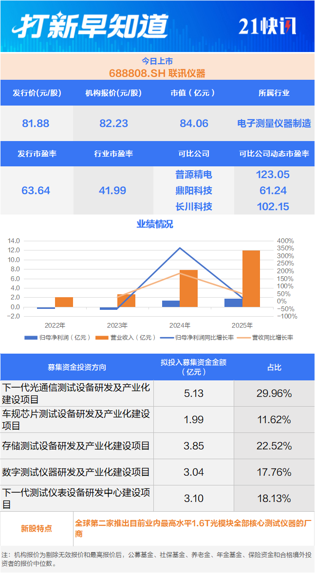 高端测试仪器修设企业联讯仪器是国内当先的,测试修设的研发、创造、发售及办事主交易务为电子衡量仪器和半导体,高速度、高精度、高效能的中枢测试仪器修设专业为环球高速通讯和半导体等规模用户供应。